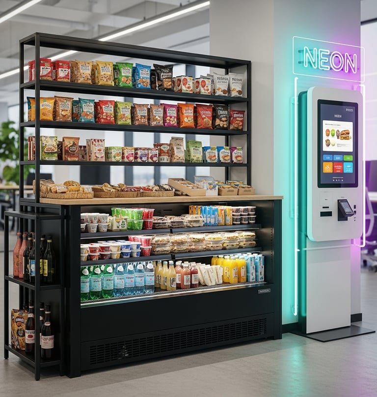 Oferecemos um mix completo de mercado: bebidas geladas, mercearia, higiene, adega e snacks. Utilizamos análise de dados para repor exatamente o que o seu público mais consome.